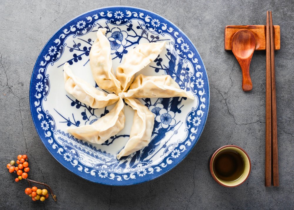 Jiaozi adalah dumplings klasik berbentuk mirip gold inglots atau batangan emas kuno. Karena bentuknya seperti batangan emas kuno, jiaozi menjadi salah satu kudapan yang wajib ada di atas meja. Makanan ini melambangkan harta dan kekayaan atau rezeki.