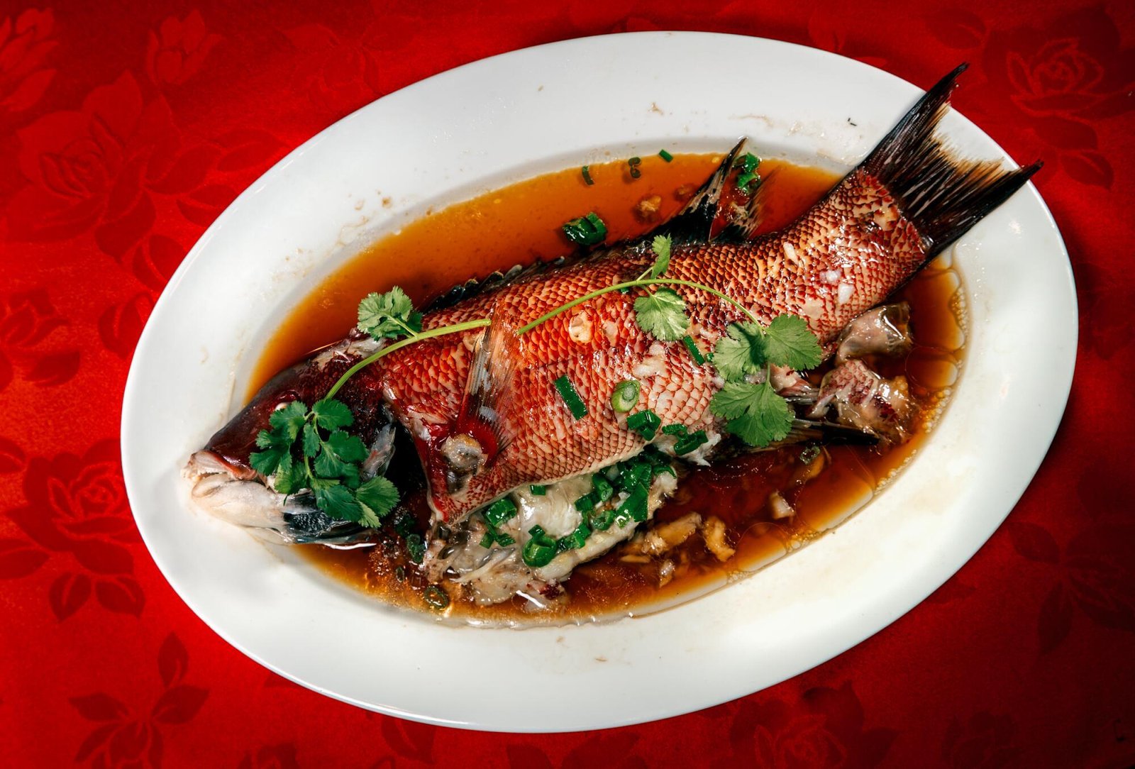 Ikan utuh kukus atau steamed whole fish, merupakan salah satu hidangan yang sangat penting untuk tersaji di atas meja saat Imlek. Kenapa? Karena dalam bahasa Mandarin, kata fish pronunciation-nya mirip dengan yú, yang artinya adalah surplus atau kelimpahan. Sehingga menu ini melambangkan harapan akan kelimpahan di sepanjang tahun.