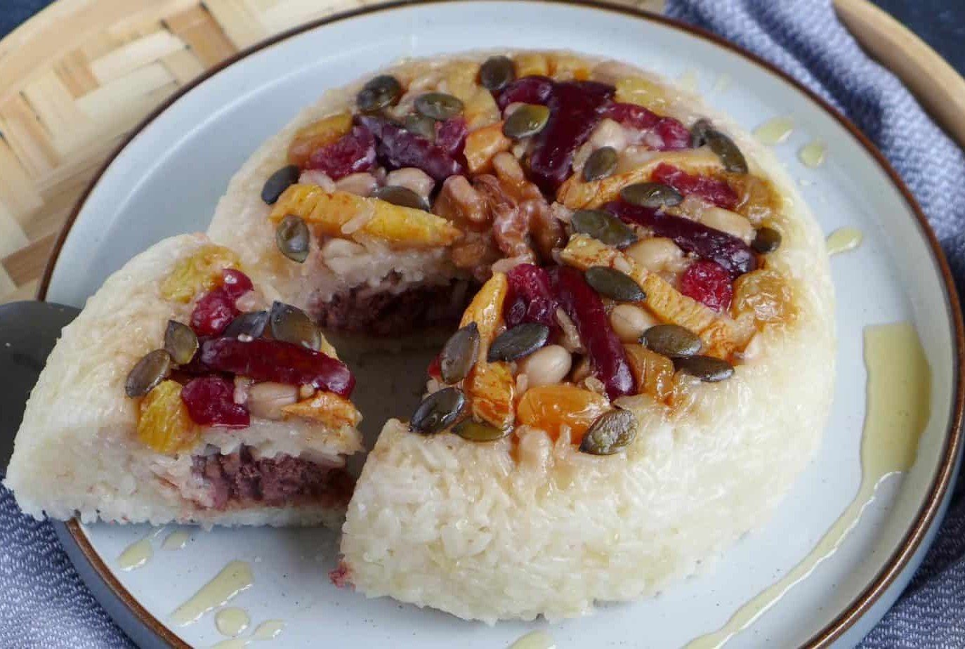 Menu selanjutnya adalah bao bao fan. Bao bao fan adalah makanan manis dari ketan dengan delapan bahan utama yang masing-masing punya arti simbolis. Angka delapan sendiri dipercaya berkaitan dengan kemakmuran dan keberuntungan besar.