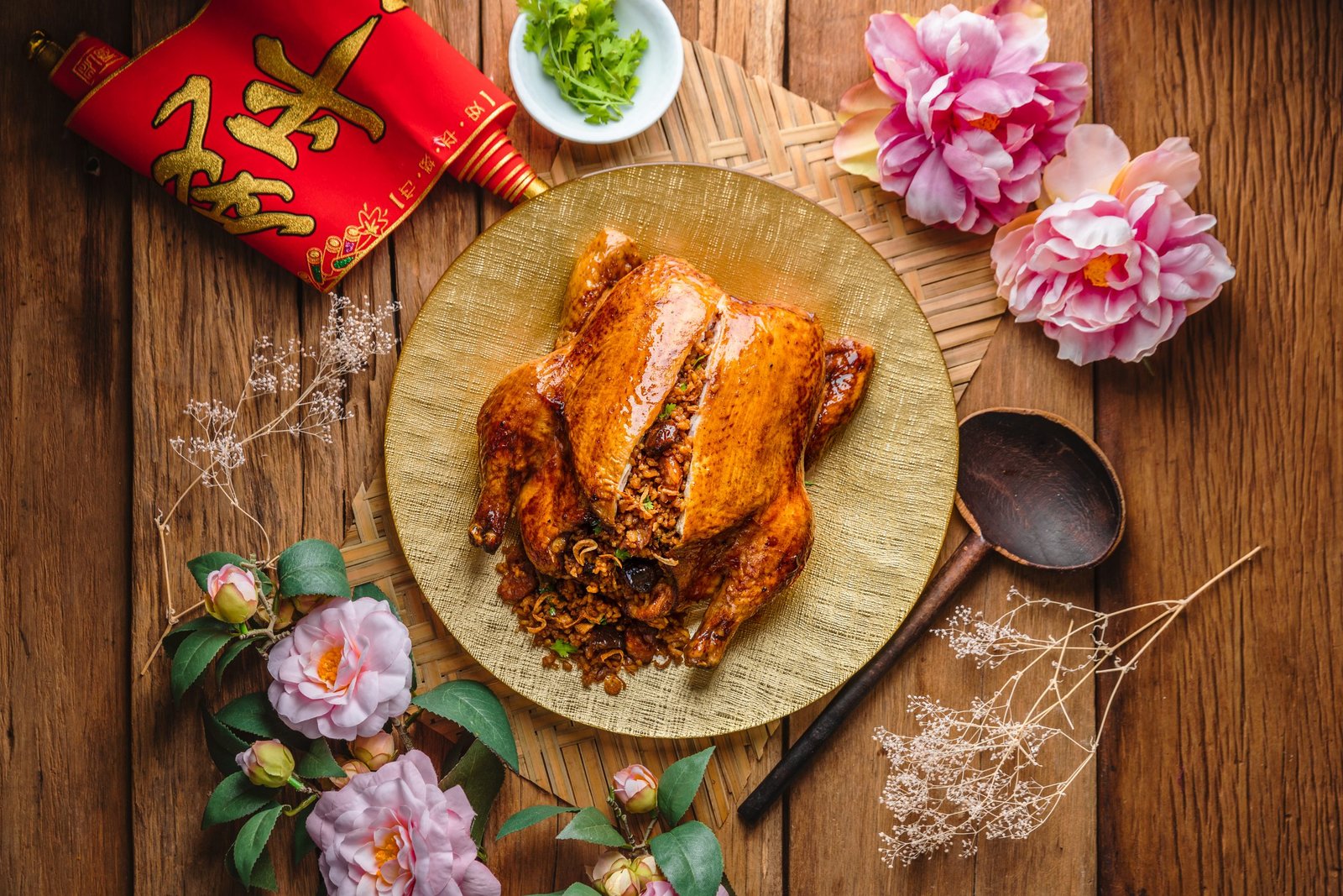 Makanan berikutnya yang juga harus ada di atas meja makan saat Imlek adalah ayam utuh atau whole roasted chicken. Seperti namanya, ayam ini disajikan secara utuh alias tidak dipotong-potong. Menu ini menggambarkan kesatuan di dalam keluarga, kebersamaan dan utuhnya kehidupan keluarga.