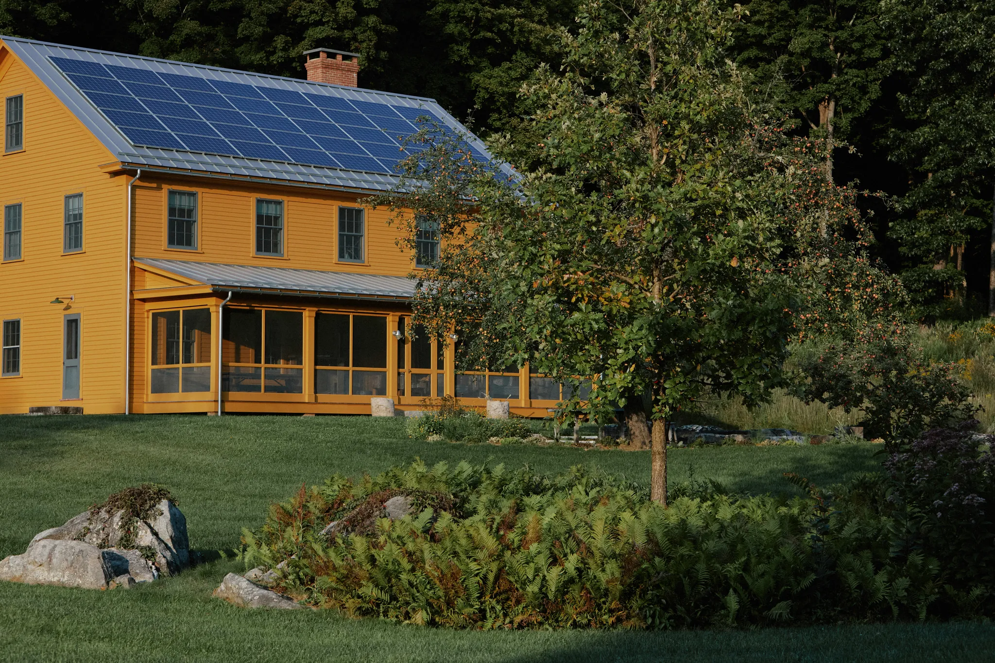 “Rumah pertanian baru ini menghormati warna yang ditemukan pada bangunan utilitas di Hancock Shaker Village di Massachusetts sambil menggemakan aksen cerah yang ditemukan di ladang bunga liar musim panas dan dedaunan selama bulan-bulan musim gugur,” kata sang desainer.