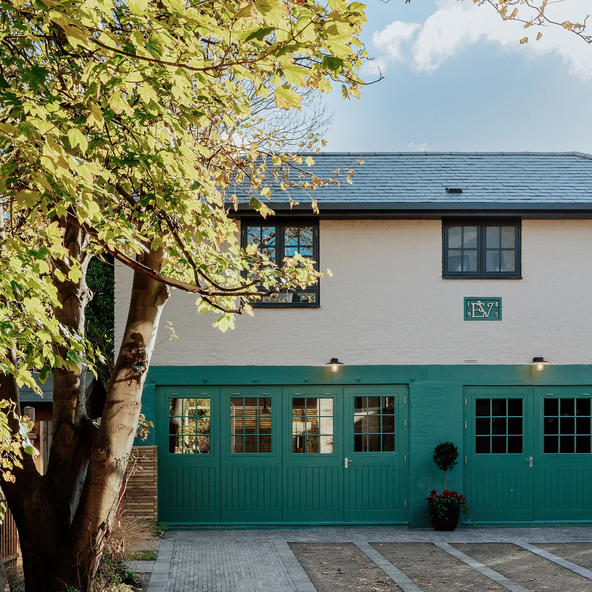 Saat merenovasi rumah kereta kuda terpisah berusia 100 tahun sebagai bagian dari proyek di daerah Brixton, London, firma desain Kinland memilih warna hijau daun dan putih krem untuk eksteriornya. Bagian bawah properti tersebut dicat dengan Little Greene’s Pleat, Yakni warna hijau lembut dan alami yang menyatukan bangunan dengan lingkungannya yang rimbun dan menghadirkan nuansa hangat dan nyaman.