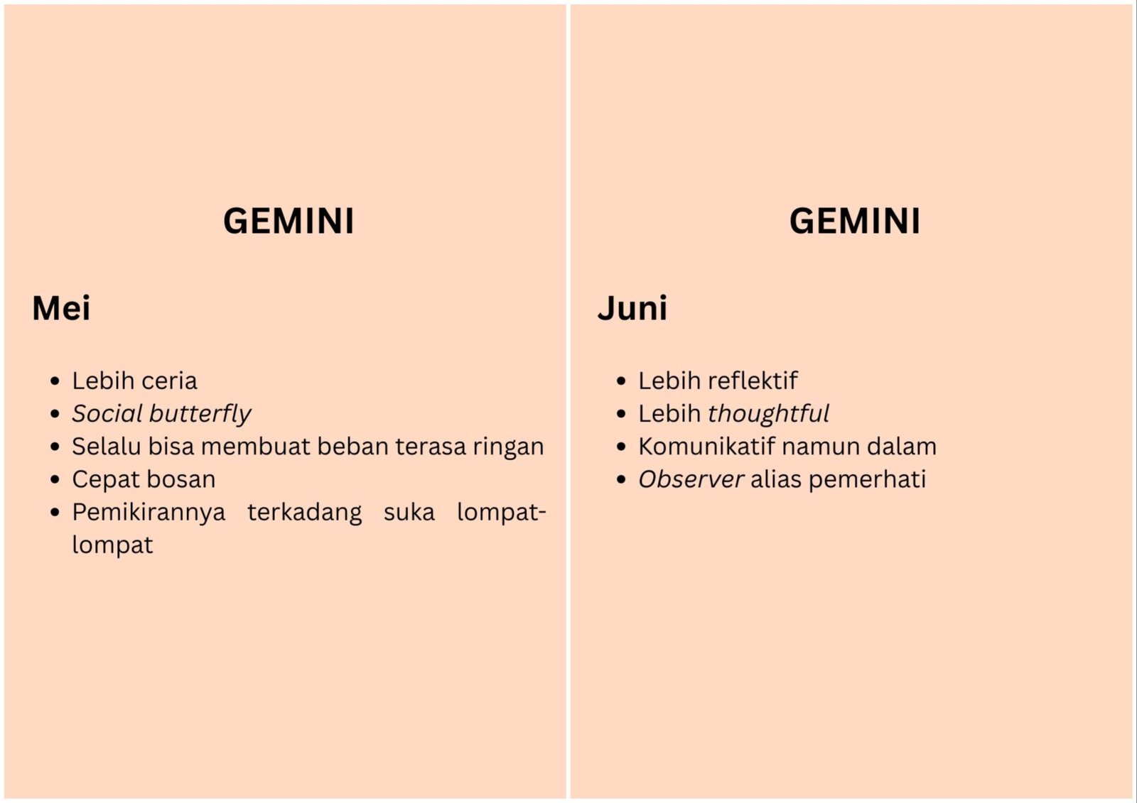Kalau mengutip ucapan tokoh Linda Rajagukguk di film Agak Laen: Menyala Pantiku, zodiak Gemini disematkan untuk orang yang karakternya labil.